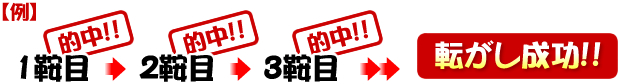 このように1鞍目~3鞍目迄の全てを的中でつなぐ事で転がしは成功となります。