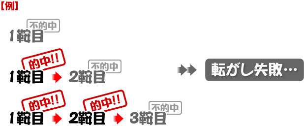 というのも、転がし馬券を続けて引き続き「的中」が続けば利益は確実に拡大しますが、的中率は決して100%ではないのです。
